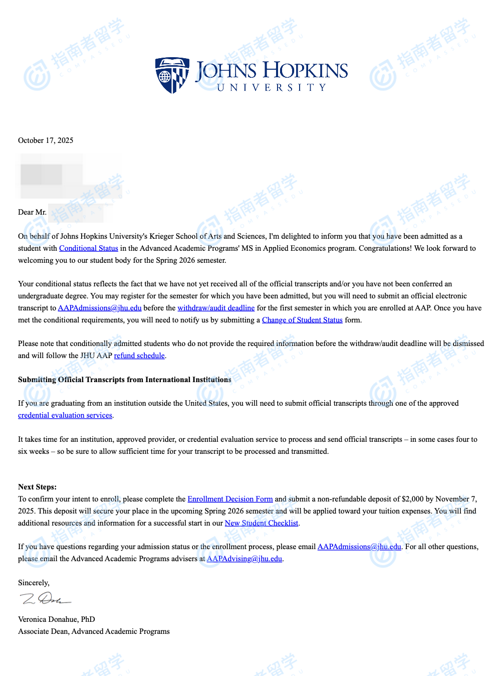 約翰霍普金斯大學(xué)應(yīng)用經(jīng)濟(jì)碩士研究生offer一枚