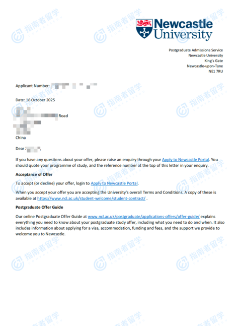 紐卡斯爾大學(英國)通信與信號處理理學碩士研究生offer一枚