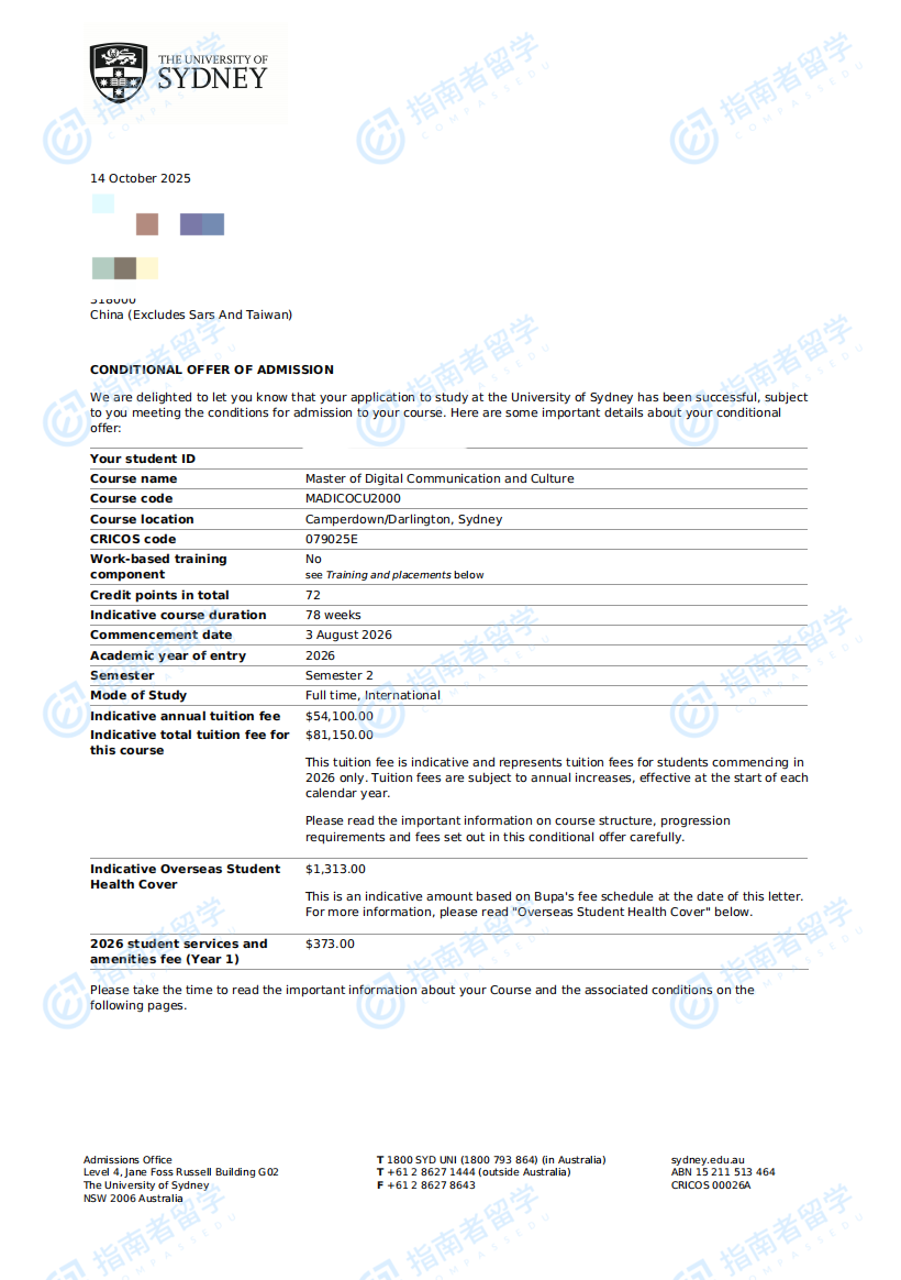 悉尼大學數(shù)字傳播與文化碩士研究生offer一枚