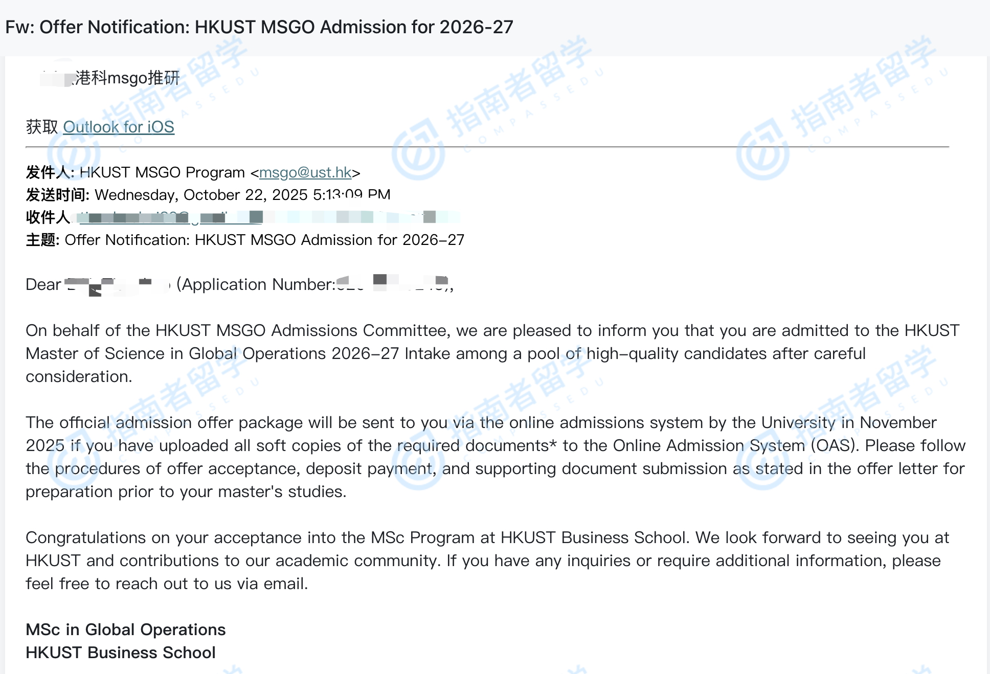 香港科技大學(xué)全球運(yùn)營理學(xué)碩士研究生offer一枚