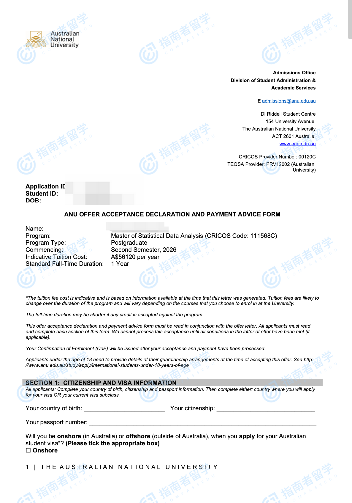 澳大利亞國立大學(xué)統(tǒng)計數(shù)據(jù)分析碩士研究生offer一枚