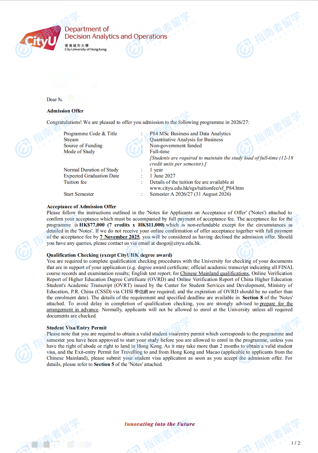 香港城市大學(xué)商業(yè)及數(shù)據(jù)分析理學(xué)碩士研究生offer一枚