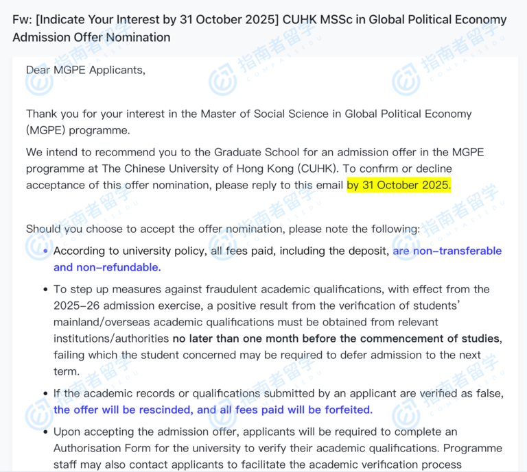 香港中文大學(xué)全球政治經(jīng)濟(jì)學(xué)社會科學(xué)碩士研究生offer一枚