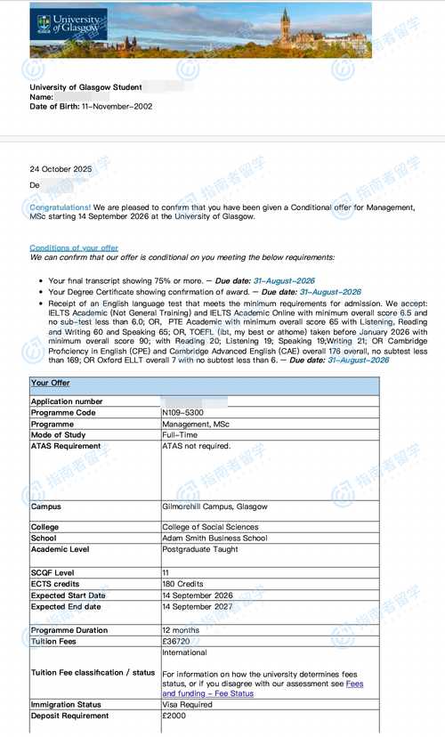格拉斯哥大學(xué)管理學(xué)理學(xué)碩士研究生offer一枚
