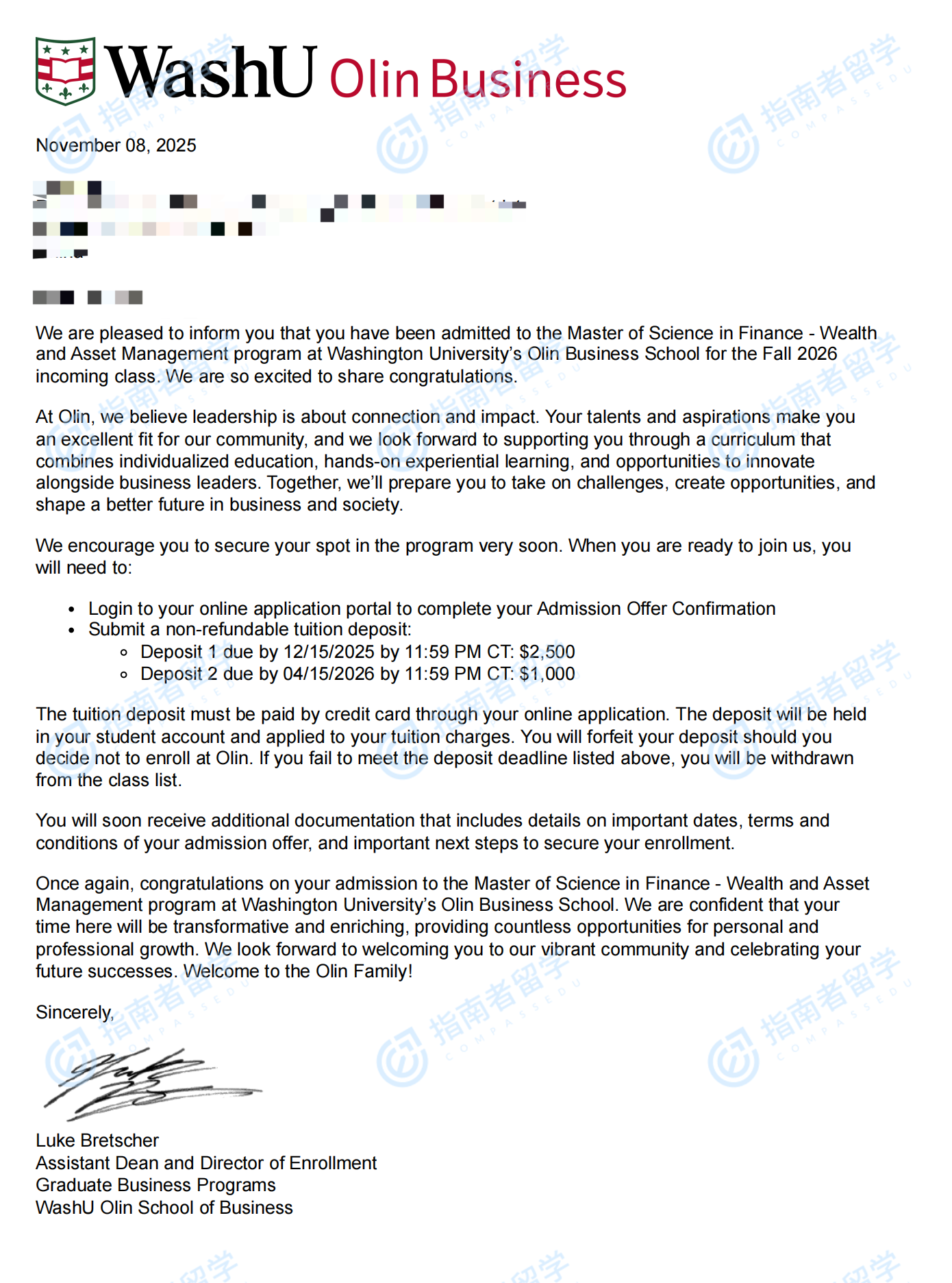 圣路易斯華盛頓大學(xué)金融碩士研究生offer一枚