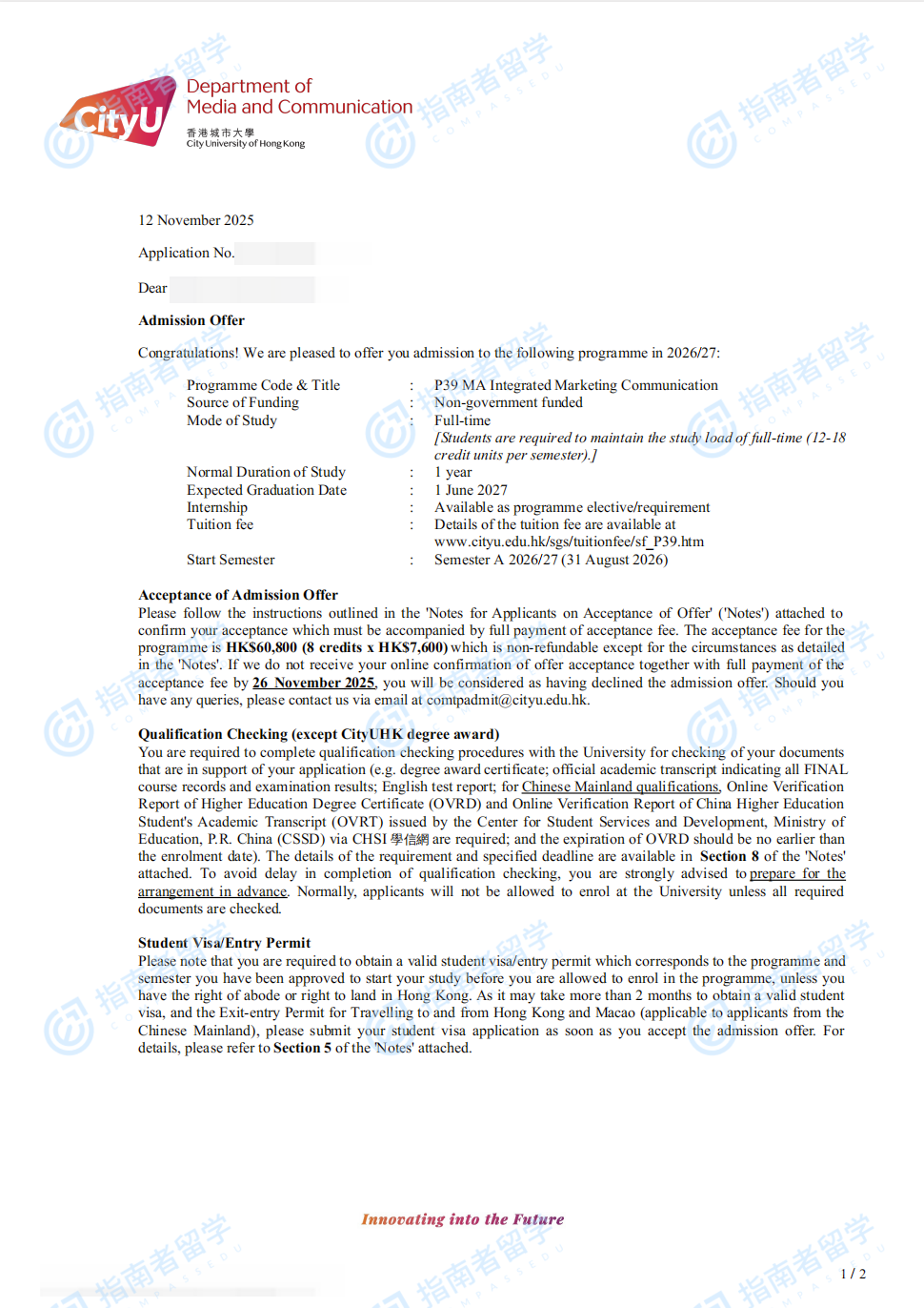 香港城市大學(xué)整合營銷傳播文學(xué)碩士研究生offer一枚