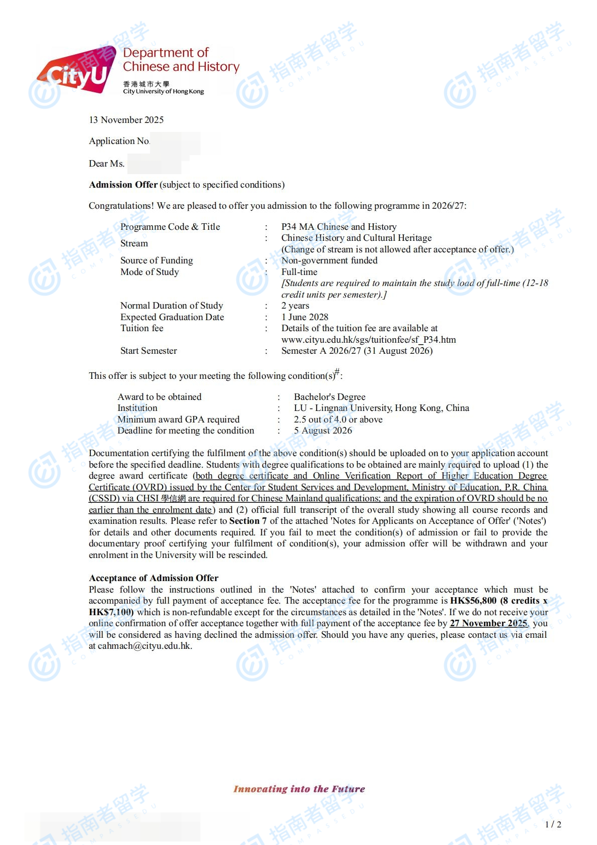 香港城市大學(xué)中國(guó)語(yǔ)言文學(xué)與歷史文學(xué)碩士研究生offer一枚