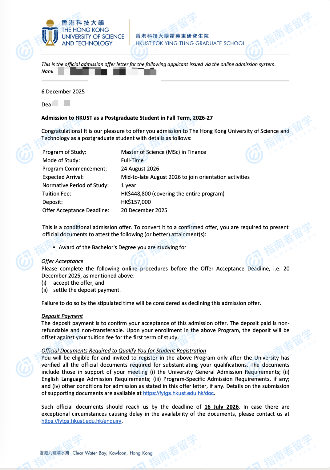 香港理工大學環(huán)球商業(yè)與決策分析理學碩士研究生offer一枚