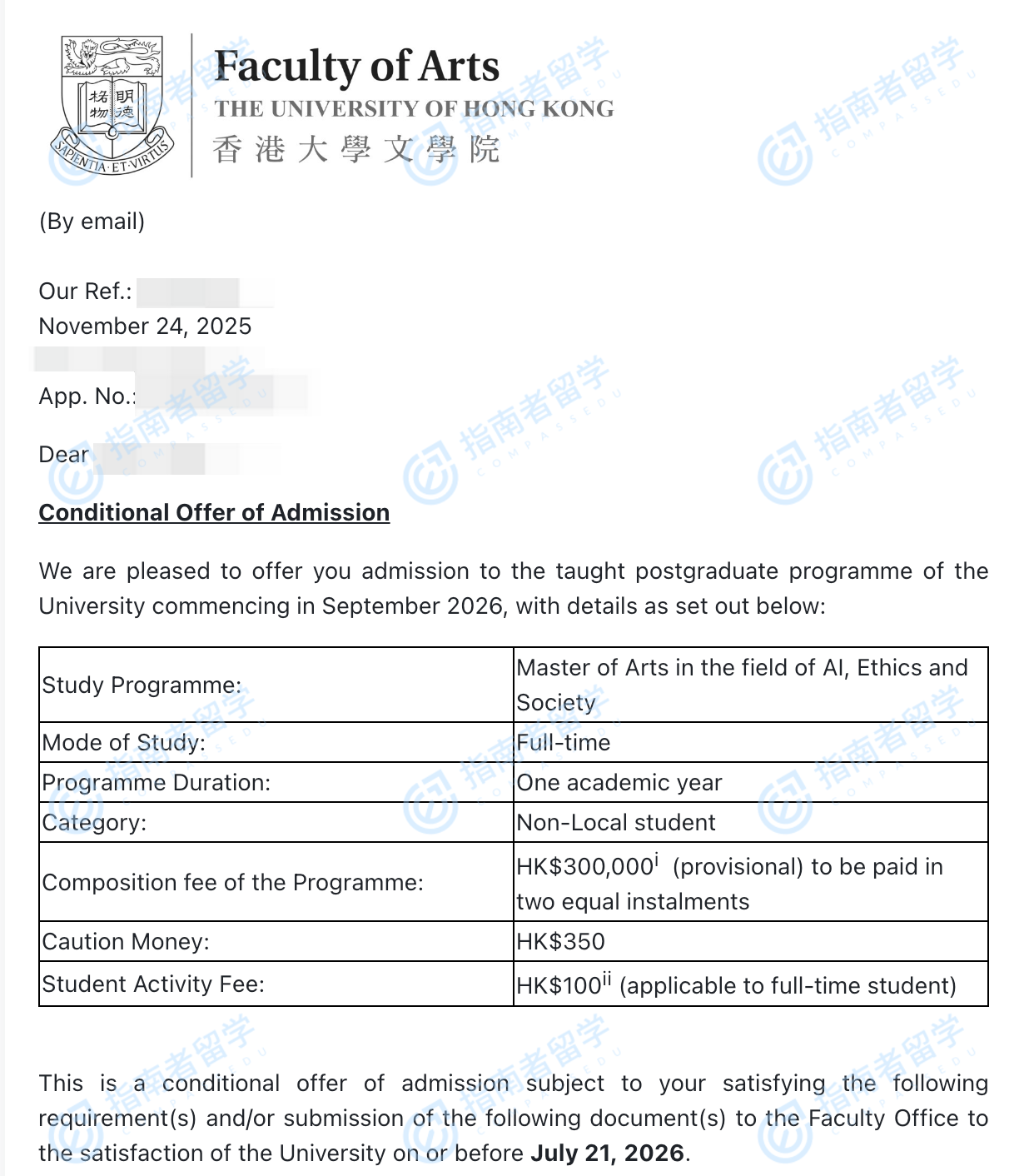 香港大學(xué)人工智能、倫理與社會文學(xué)碩士研究生offer一枚