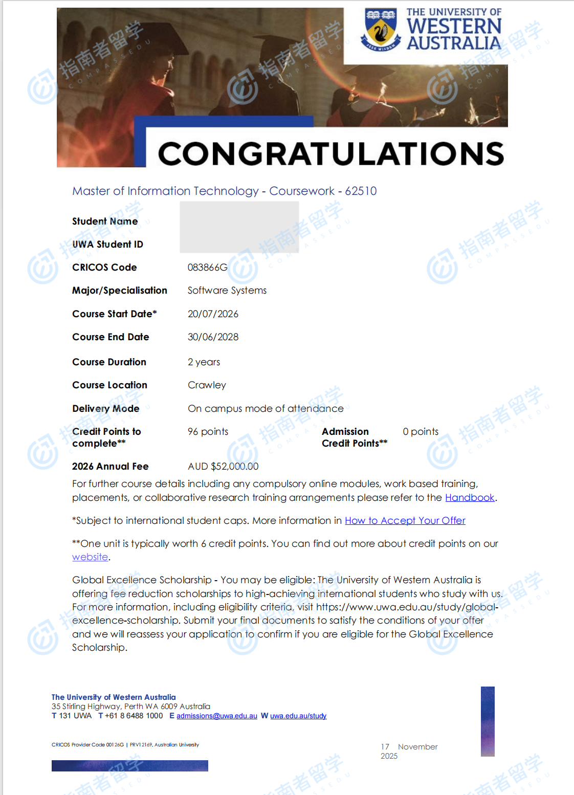 西澳大學(xué)信息技術(shù)碩士研究生offer一枚