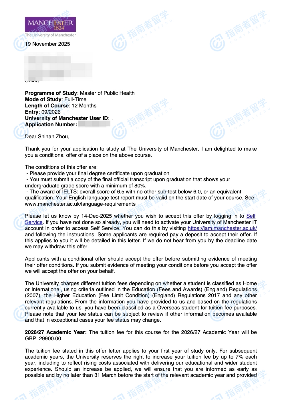 曼徹斯特大學(xué)公共衛(wèi)生碩士研究生offer一枚