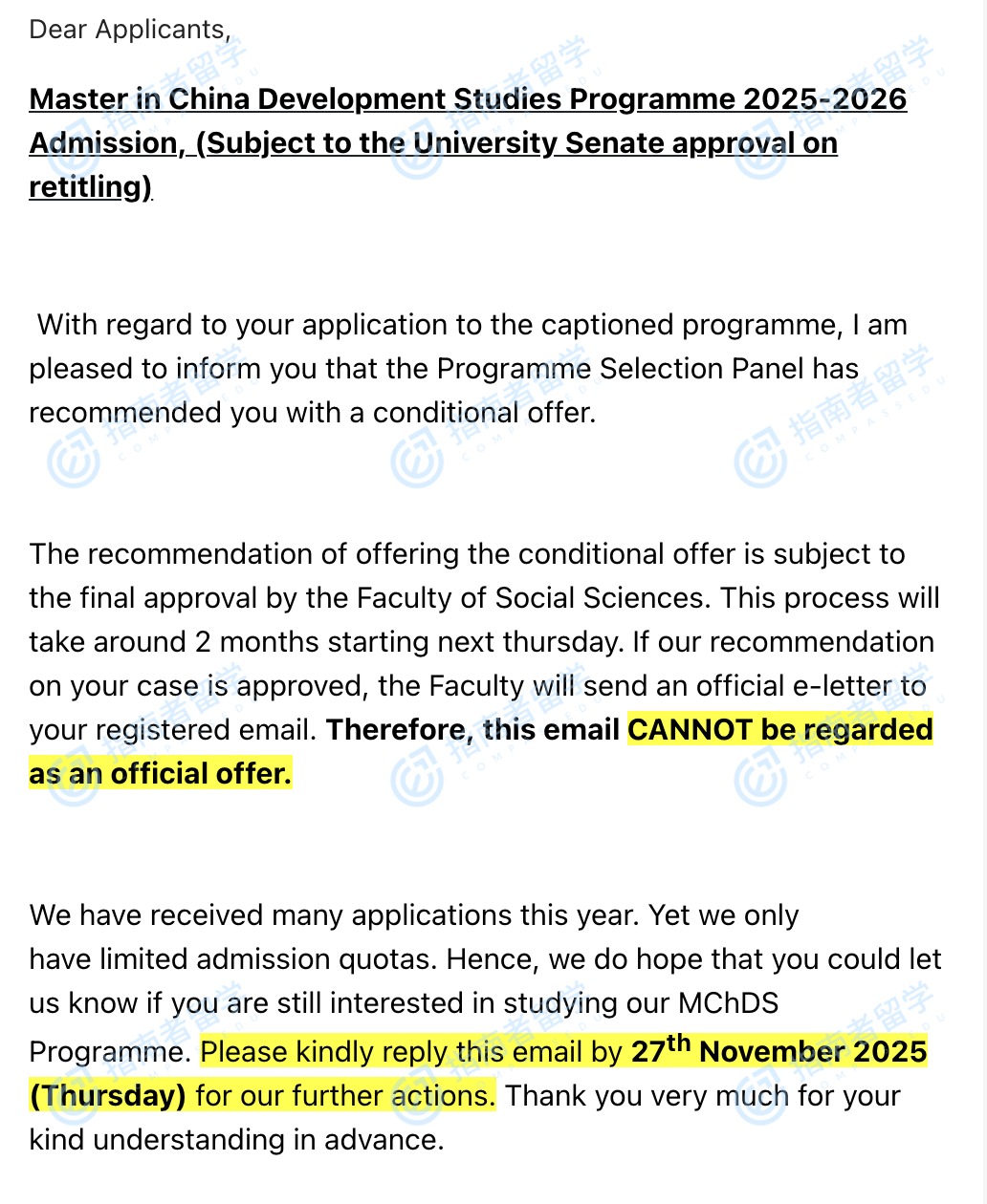 香港大學(xué)中國發(fā)展研究文學(xué)碩士研究生offer一枚