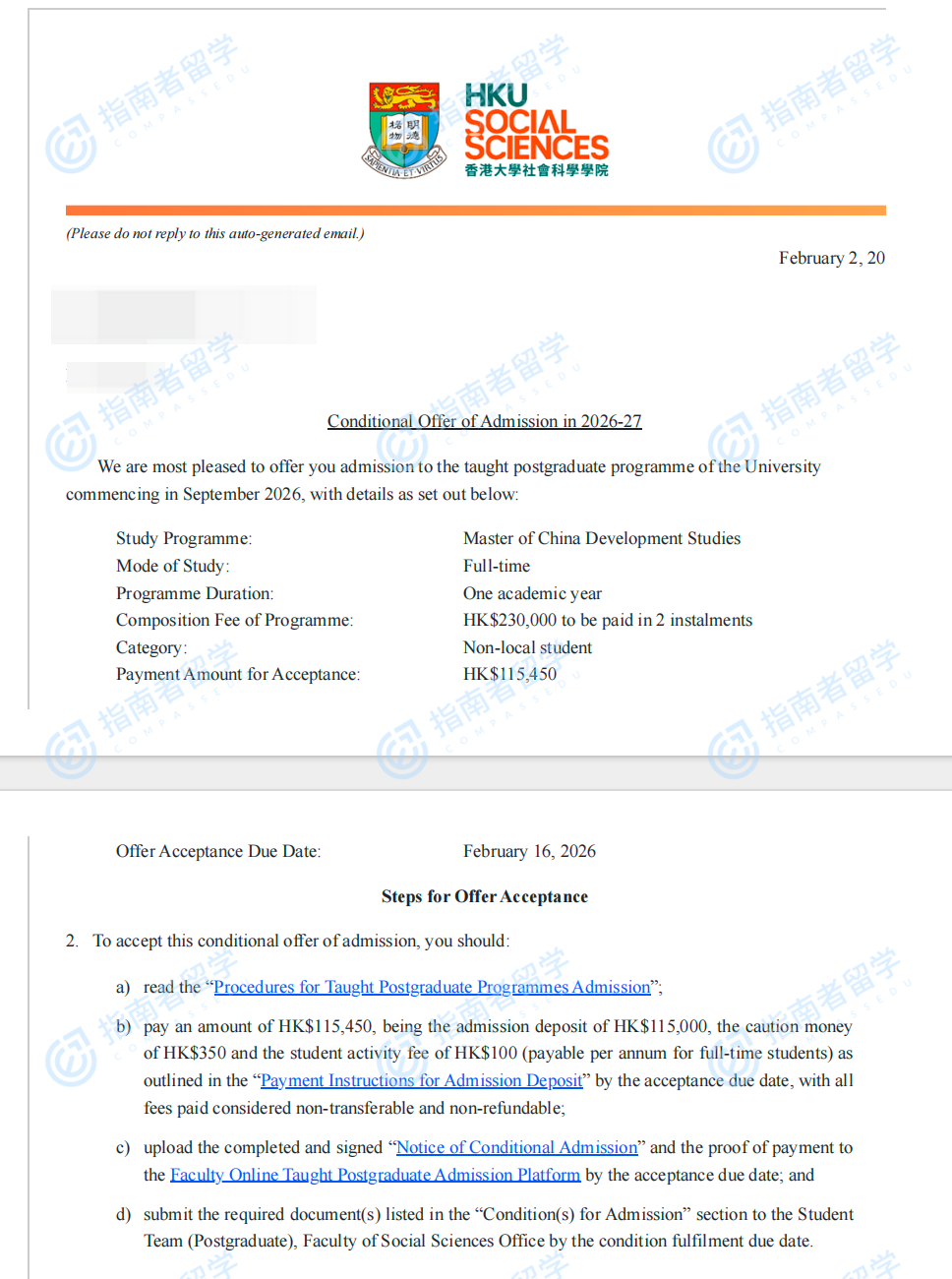 香港大學(xué)中國發(fā)展研究碩士研究生offer一枚