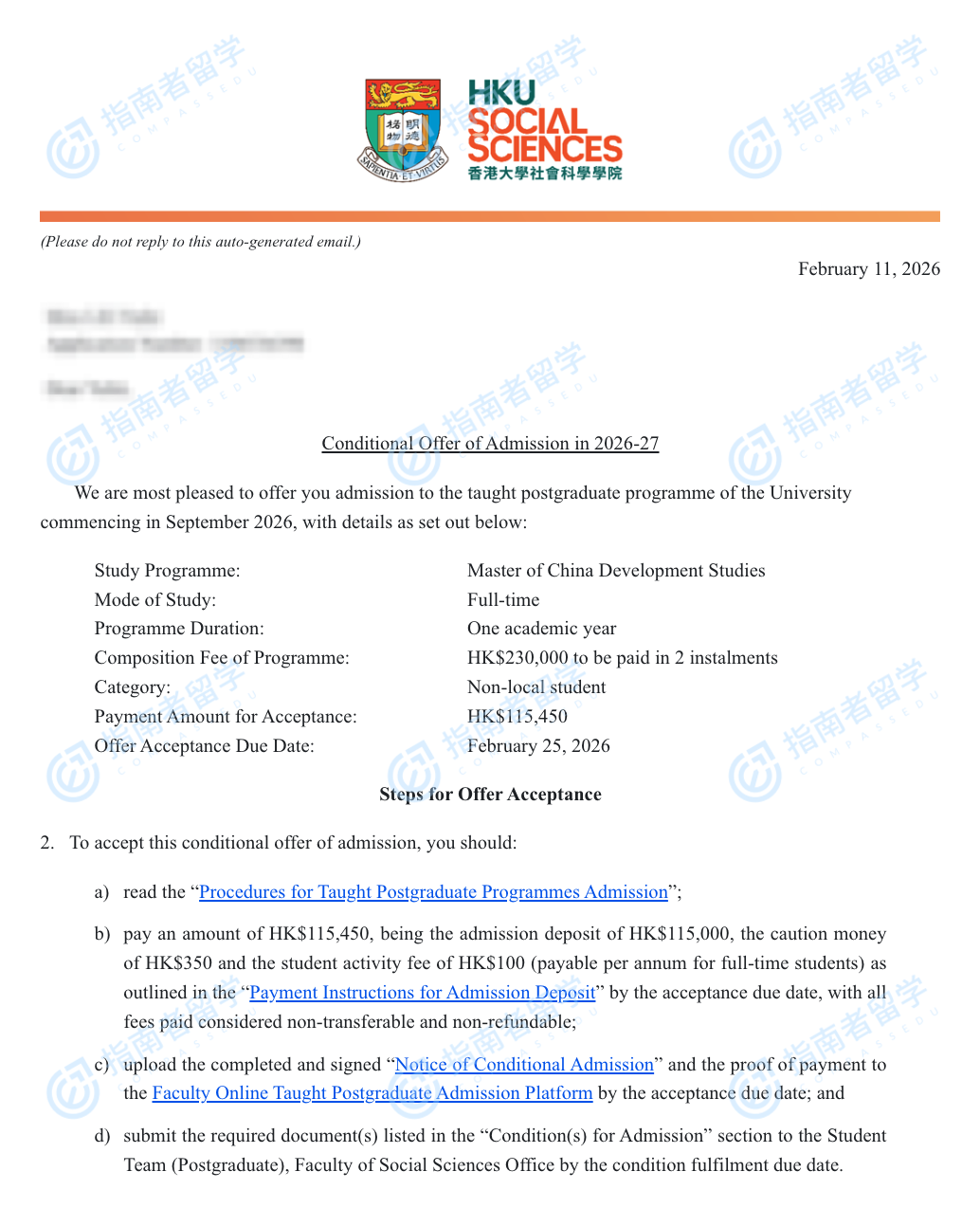 香港大學(xué)中國發(fā)展研究碩士研究生offer一枚