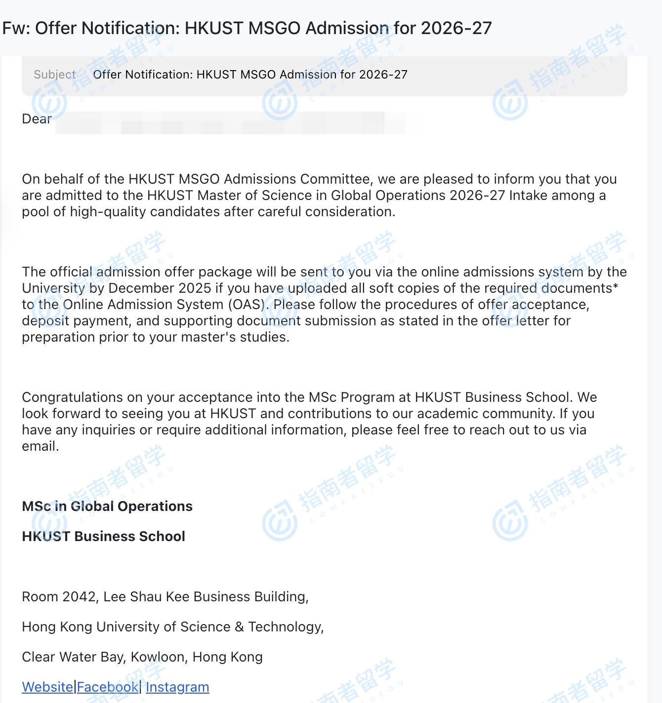 香港科技大學(xué)全球運(yùn)營(yíng)理學(xué)碩士研究生offer一枚