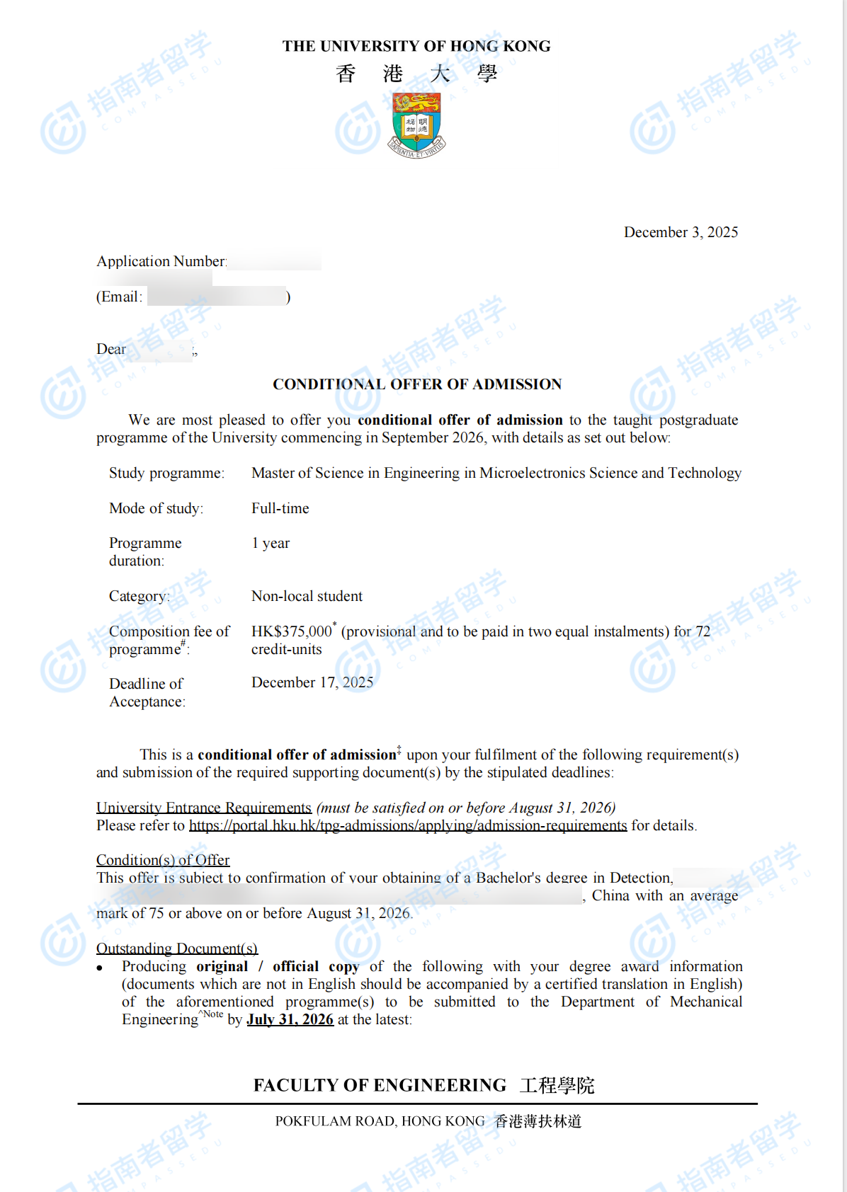 香港大學(xué)微電子科學(xué)與技術(shù)(工程)理學(xué)碩士研究生offer一枚