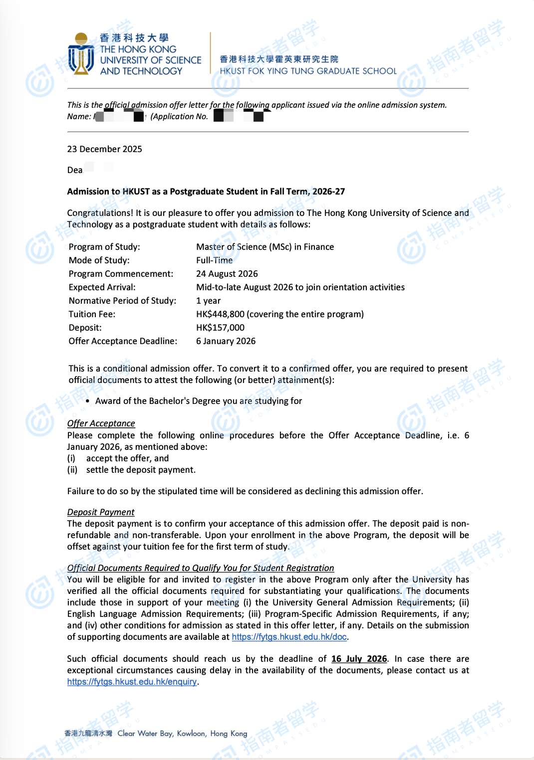香港科技大學(xué)金融學(xué)理學(xué)碩士研究生offer一枚