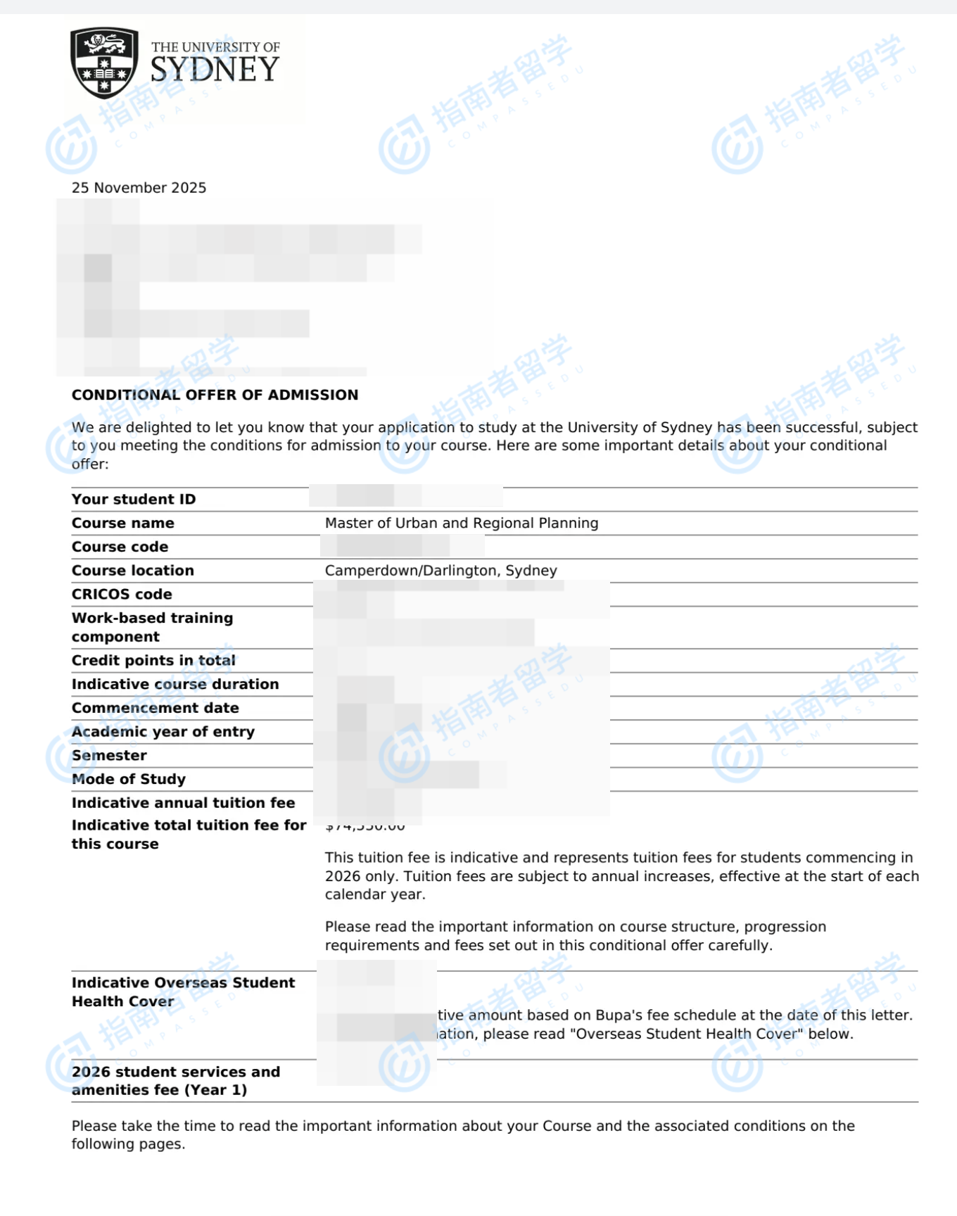 悉尼大學(xué)城市與區(qū)域規(guī)劃碩士研究生offer一枚