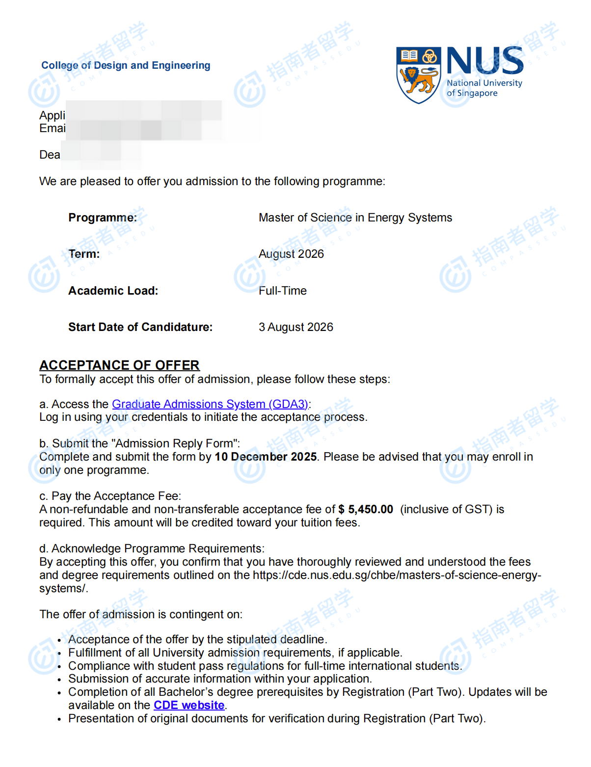 新加坡國立大學(xué)能源系統(tǒng)理學(xué)碩士研究生offer一枚