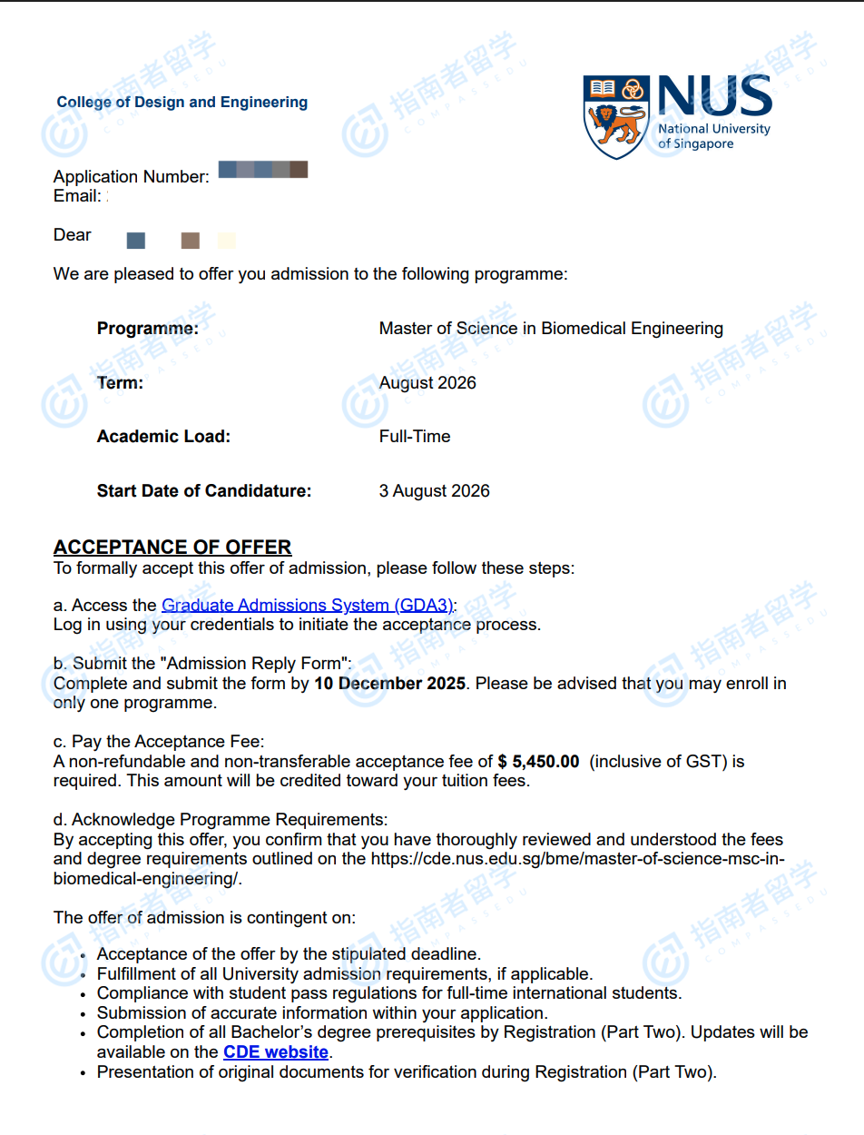 新加坡國立大學(xué)生物醫(yī)學(xué)工程理學(xué)碩士研究生offer一枚