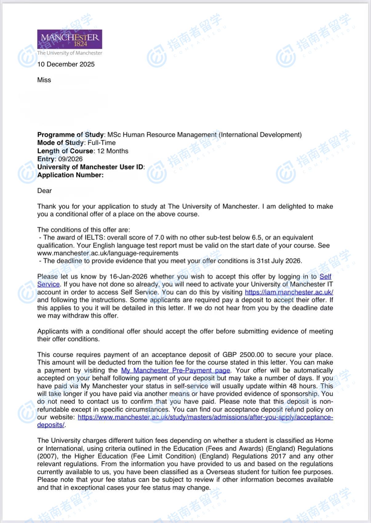 曼徹斯特大學(xué)人力資源管理(國際發(fā)展)理學(xué)碩士研究生offer一枚
