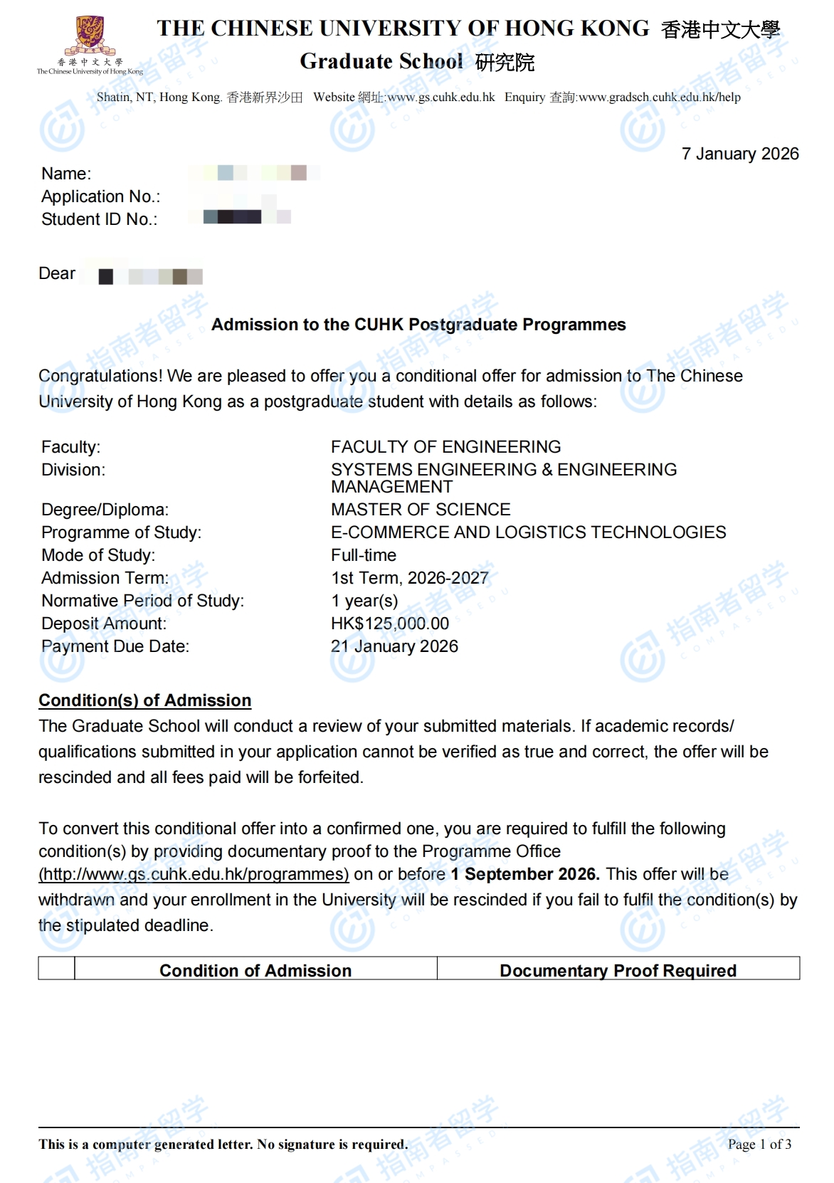 香港中文大學(xué)電子商務(wù)與物流技術(shù)理學(xué)碩士研究生offer一枚