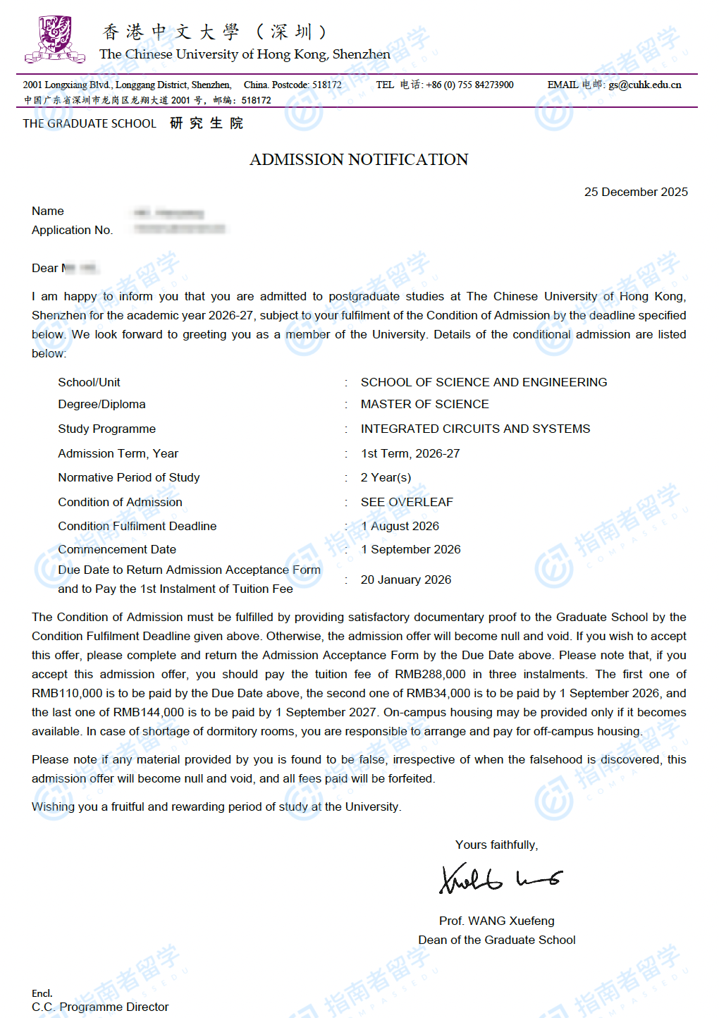 香港中文大學(xué)集成電路與系統(tǒng)理學(xué)碩士(CUHK-Shenzhen)研究生offer一枚