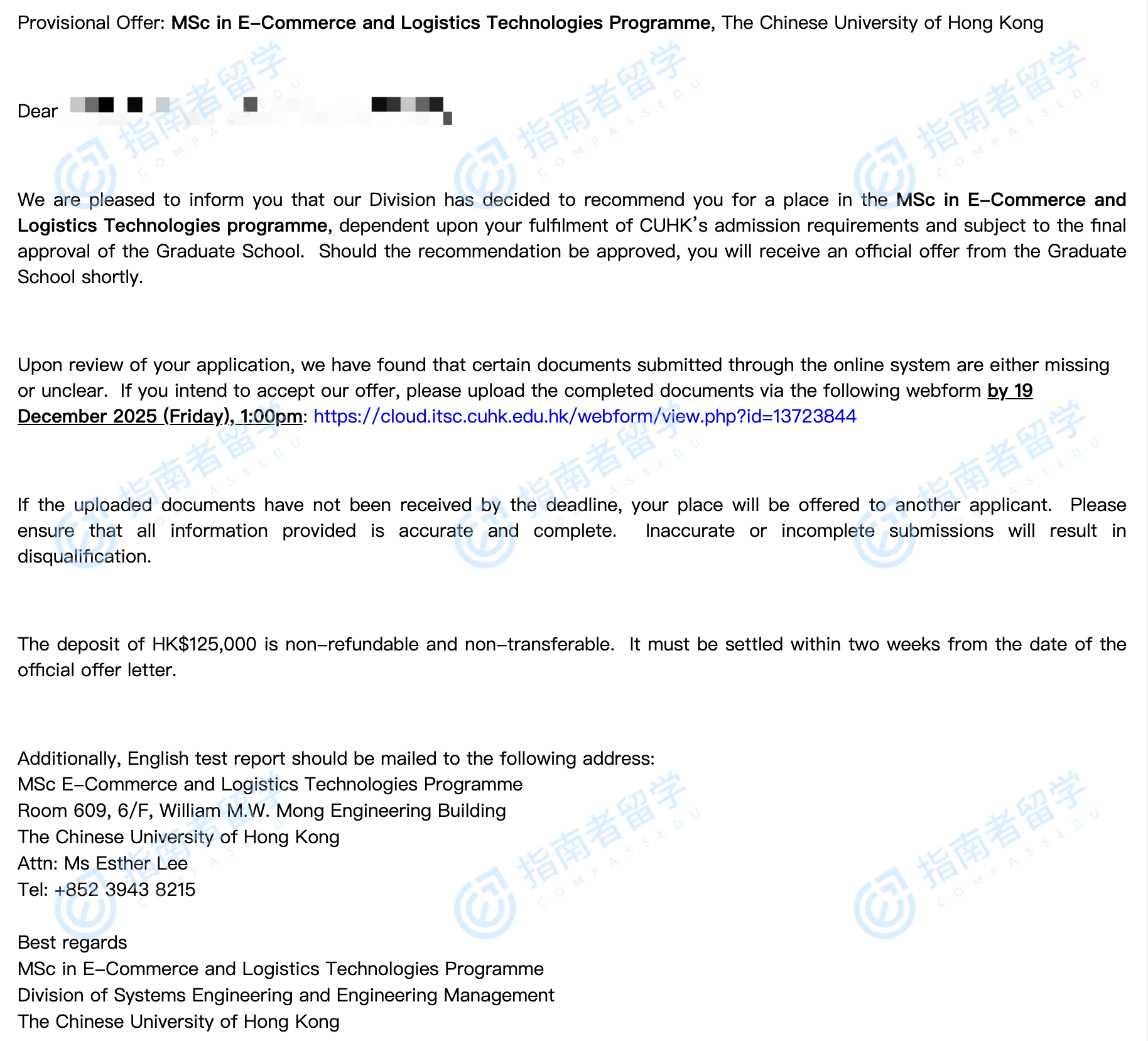 香港中文大學(xué)電子商務(wù)與物流技術(shù)理學(xué)碩士研究生offer一枚