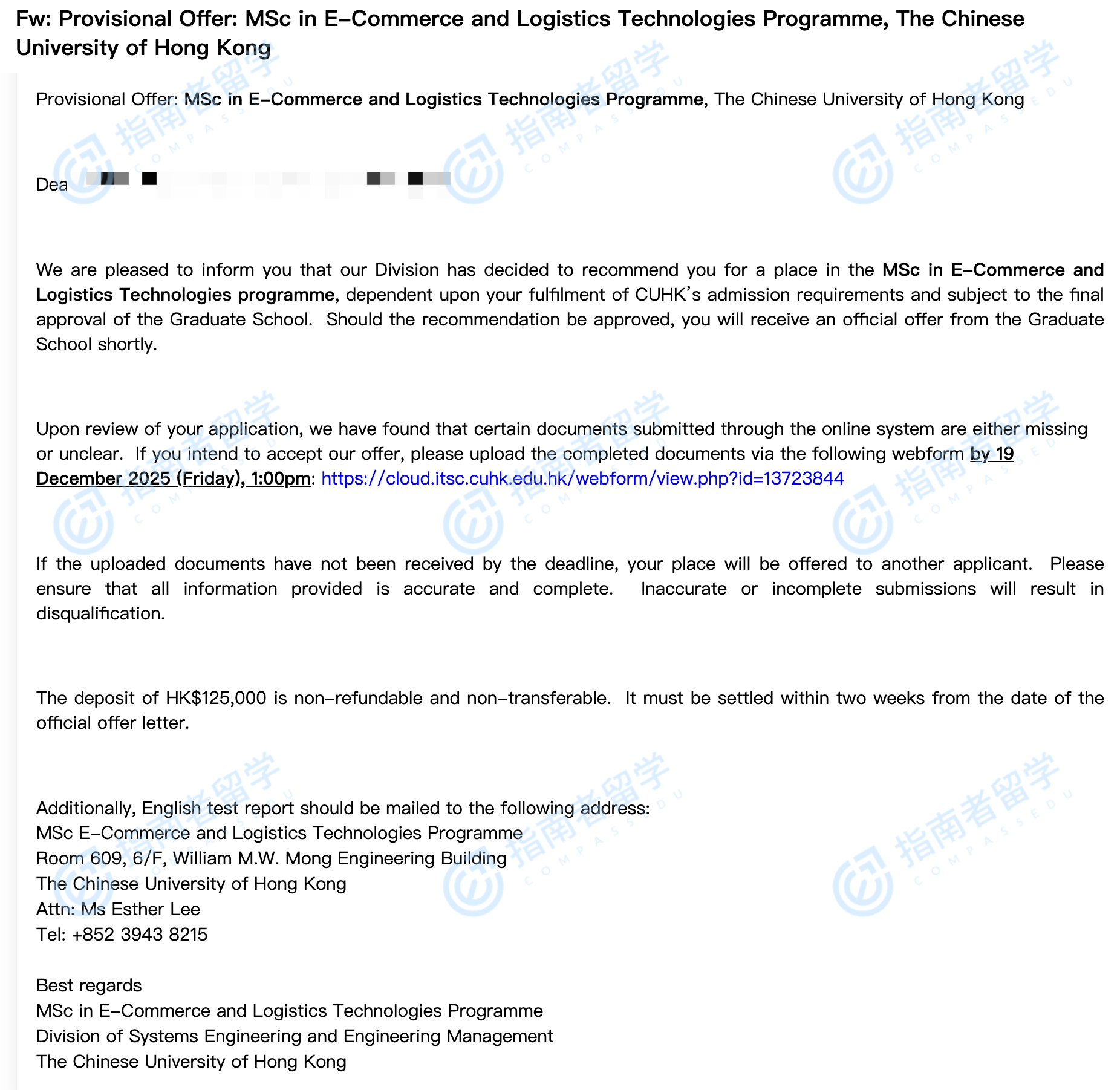 香港中文大學(xué)電子商務(wù)與物流技術(shù)理學(xué)碩士研究生offer一枚