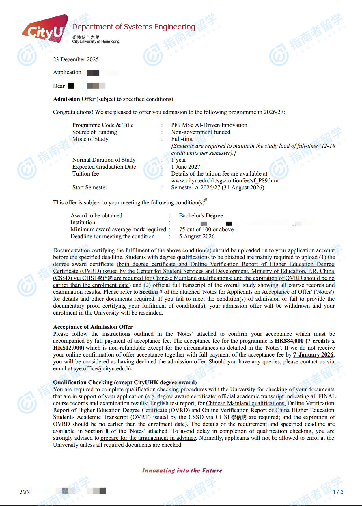 香港城市大學(xué)人工智能驅(qū)動創(chuàng)新理學(xué)碩士研究生offer一枚