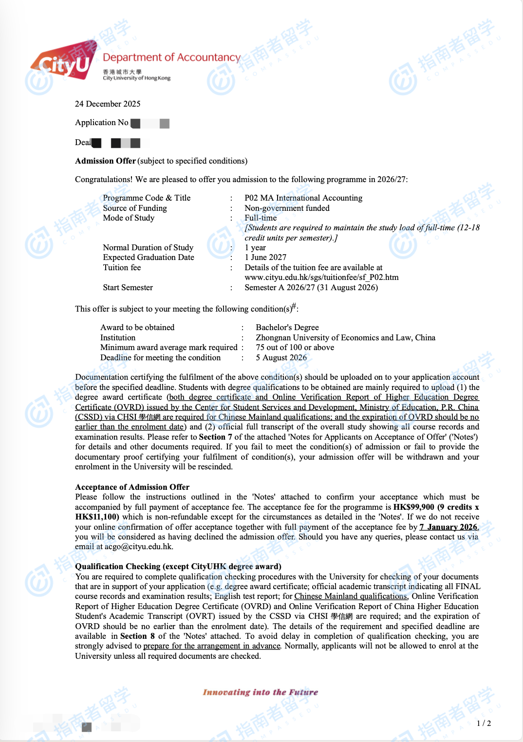 香港城市大學(xué)國際會計學(xué)文學(xué)碩士研究生offer一枚