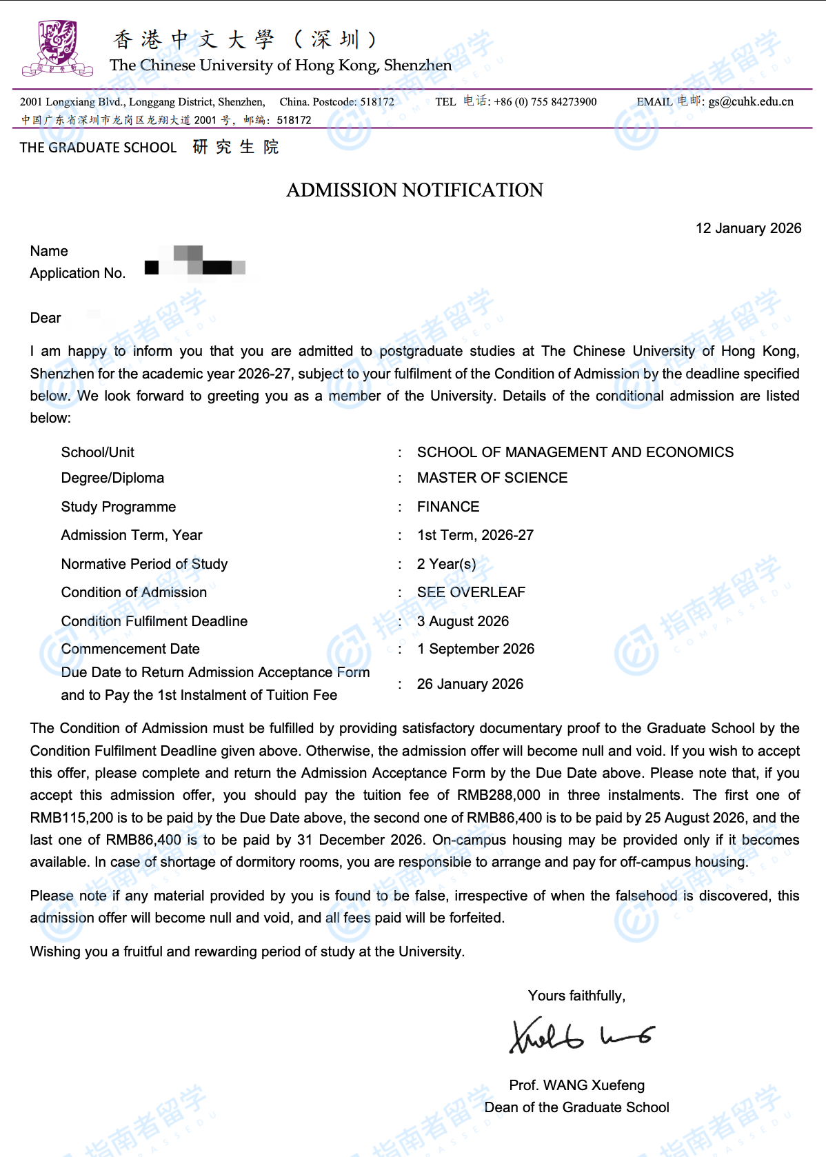 香港中文大學金融學理學碩士(CUHK-Shenzhen)研究生offer一枚
