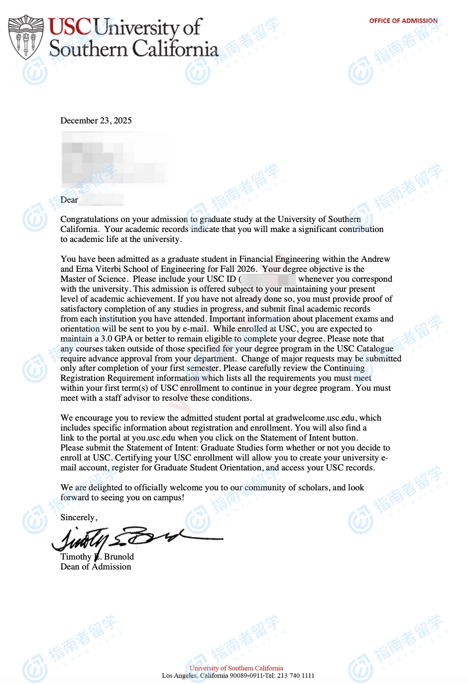 南加州大學金融工程碩士研究生offer一枚