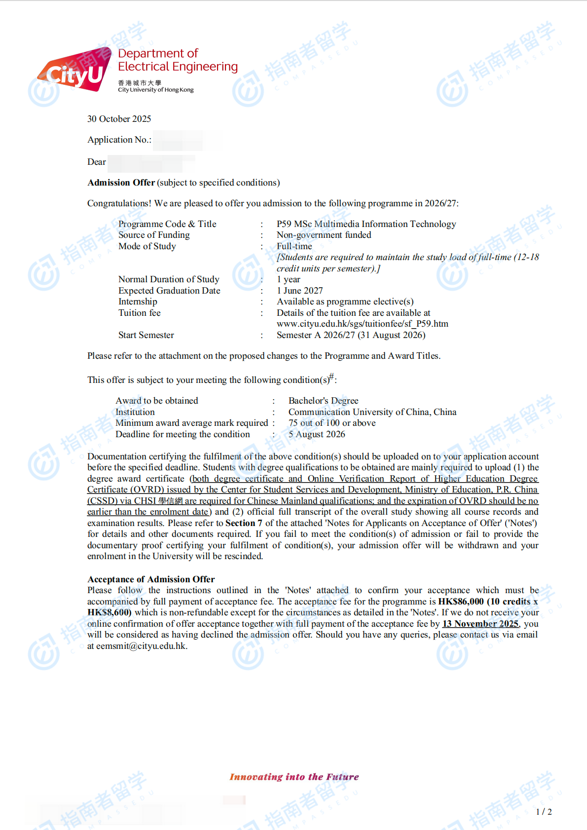 香港城市大學(xué)電子計算機與資訊工程理學(xué)碩士研究生offer一枚
