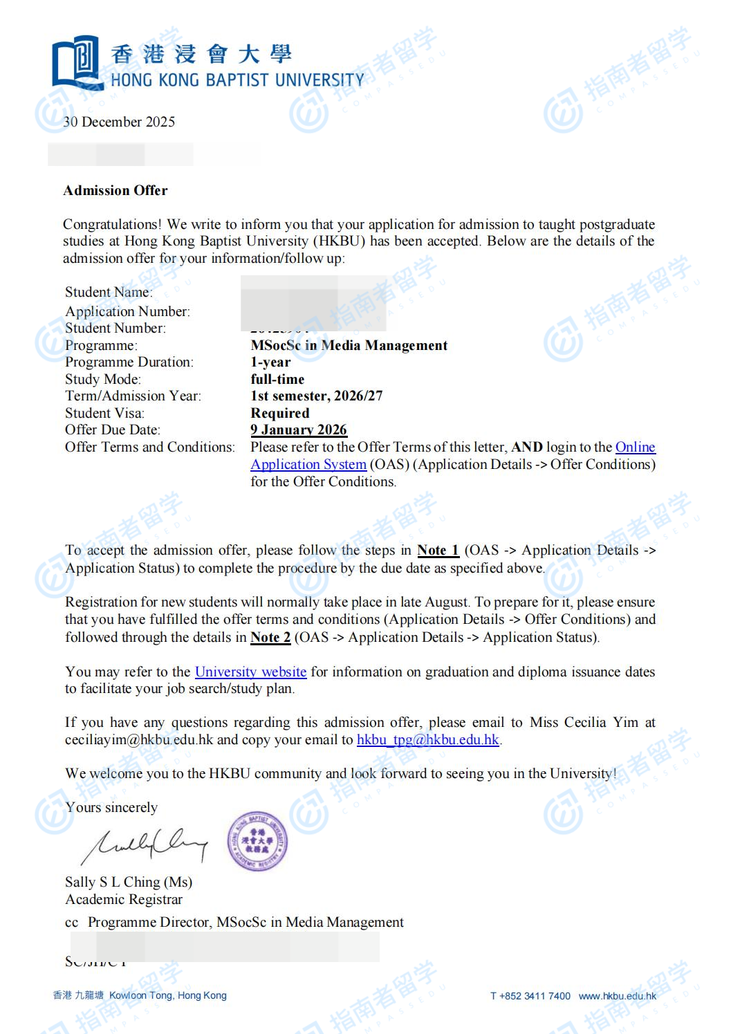 香港浸會大學(xué)傳媒管理社會科學(xué)碩士研究生offer一枚