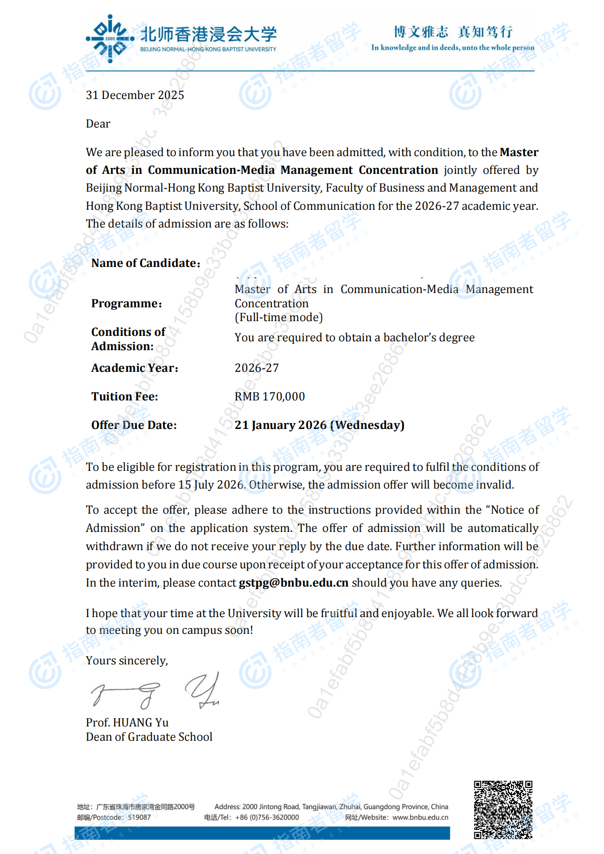 香港浸會大學傳播學文學碩士 傳媒管理專修(北師港浸大)研究生offer一枚