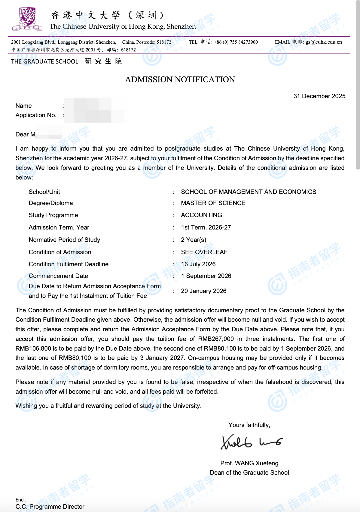 香港中文大學(xué)會(huì)計(jì)學(xué)理學(xué)碩士(CUHK-Shenzhen)研究生offer一枚