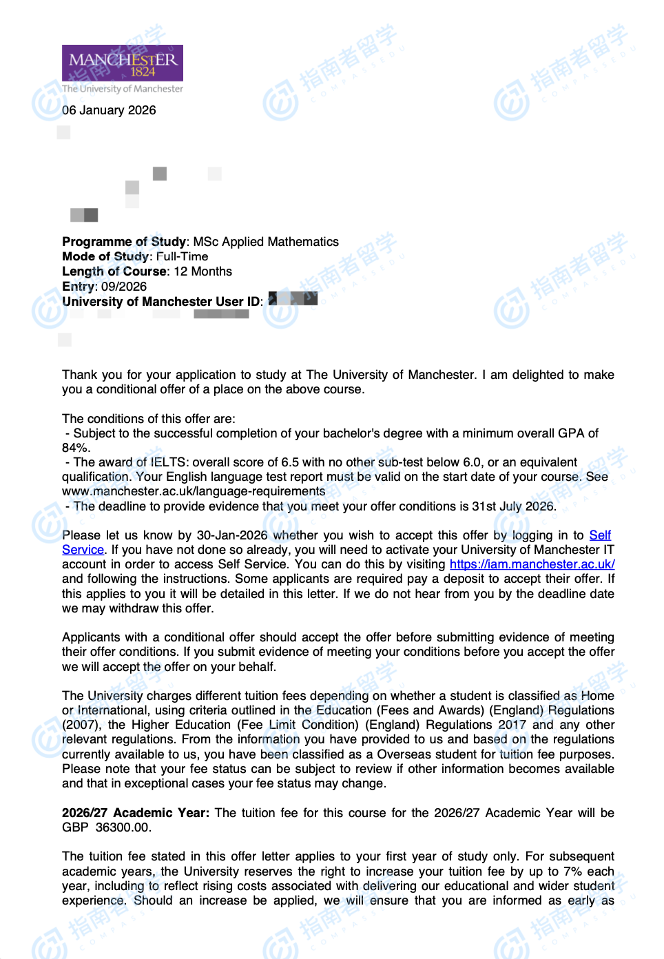 曼徹斯特大學(xué)應(yīng)用數(shù)學(xué)理學(xué)碩士研究生offer一枚