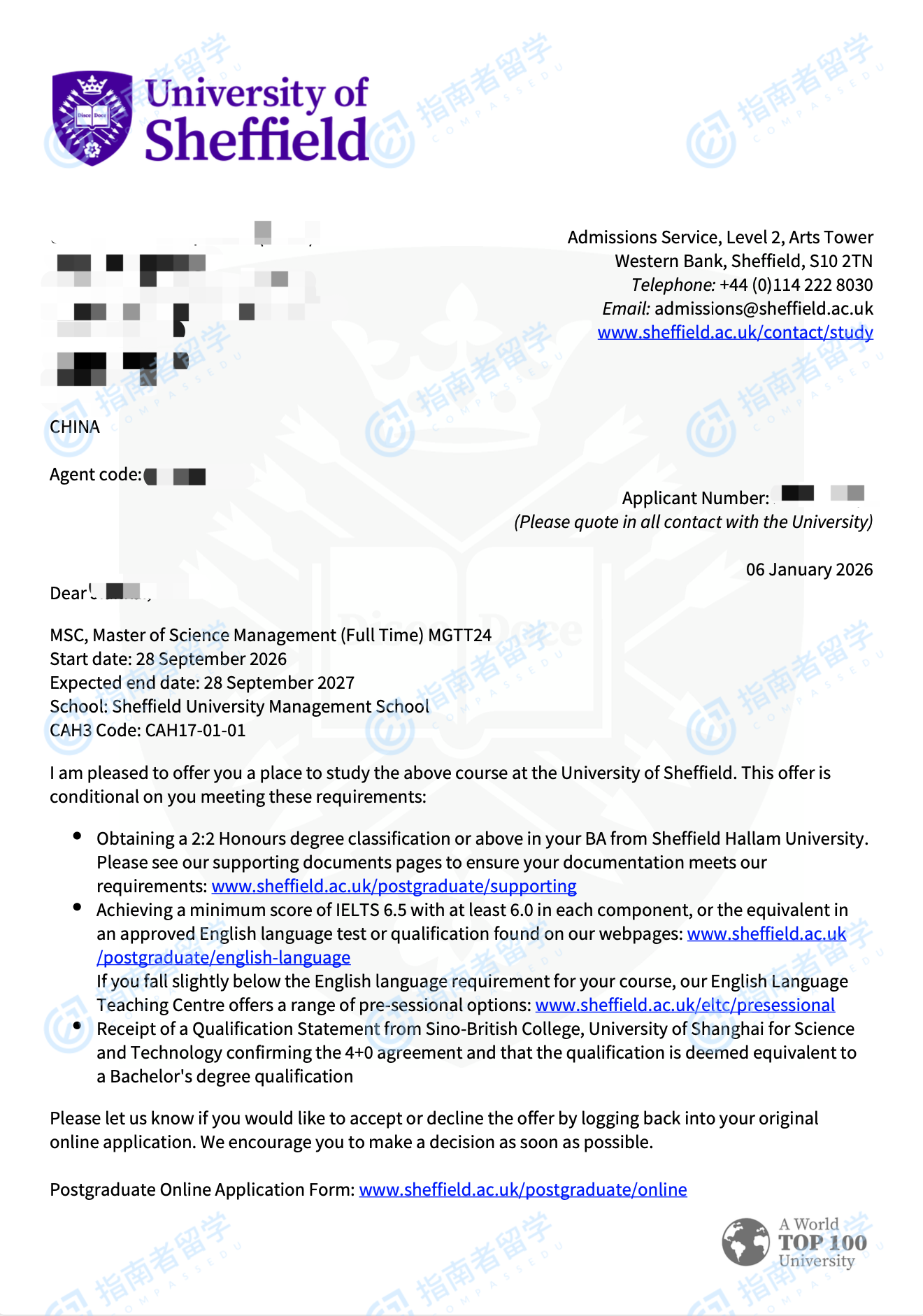 謝菲爾德大學(xué)管理學(xué)理學(xué)碩士研究生offer一枚