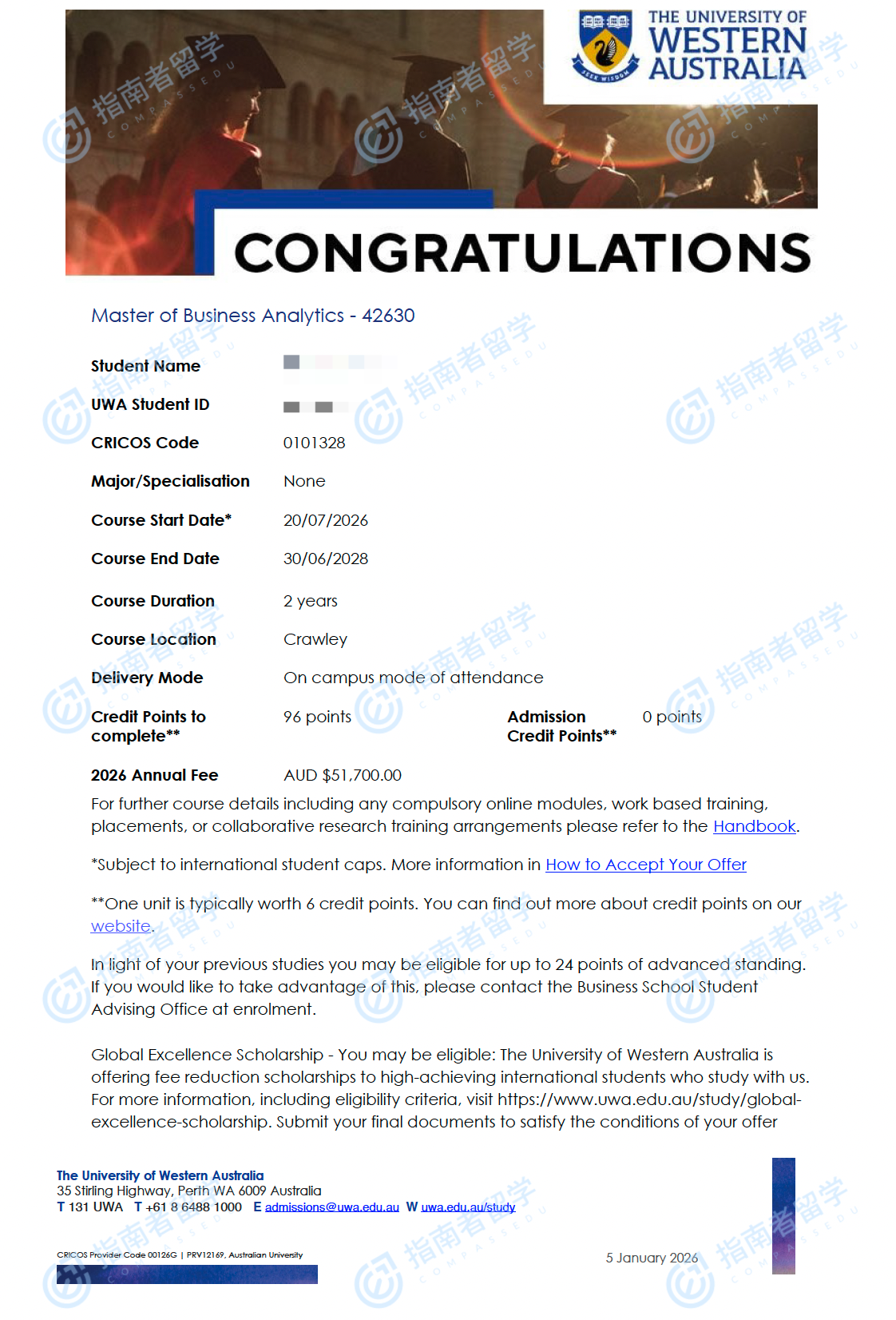 西澳大學(xué)商業(yè)分析碩士研究生offer一枚