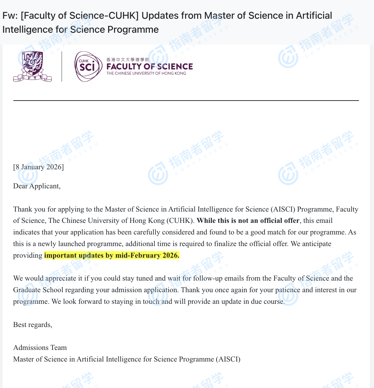 香港中文大學(xué)人工智能科學(xué)理學(xué)碩士研究生offer一枚