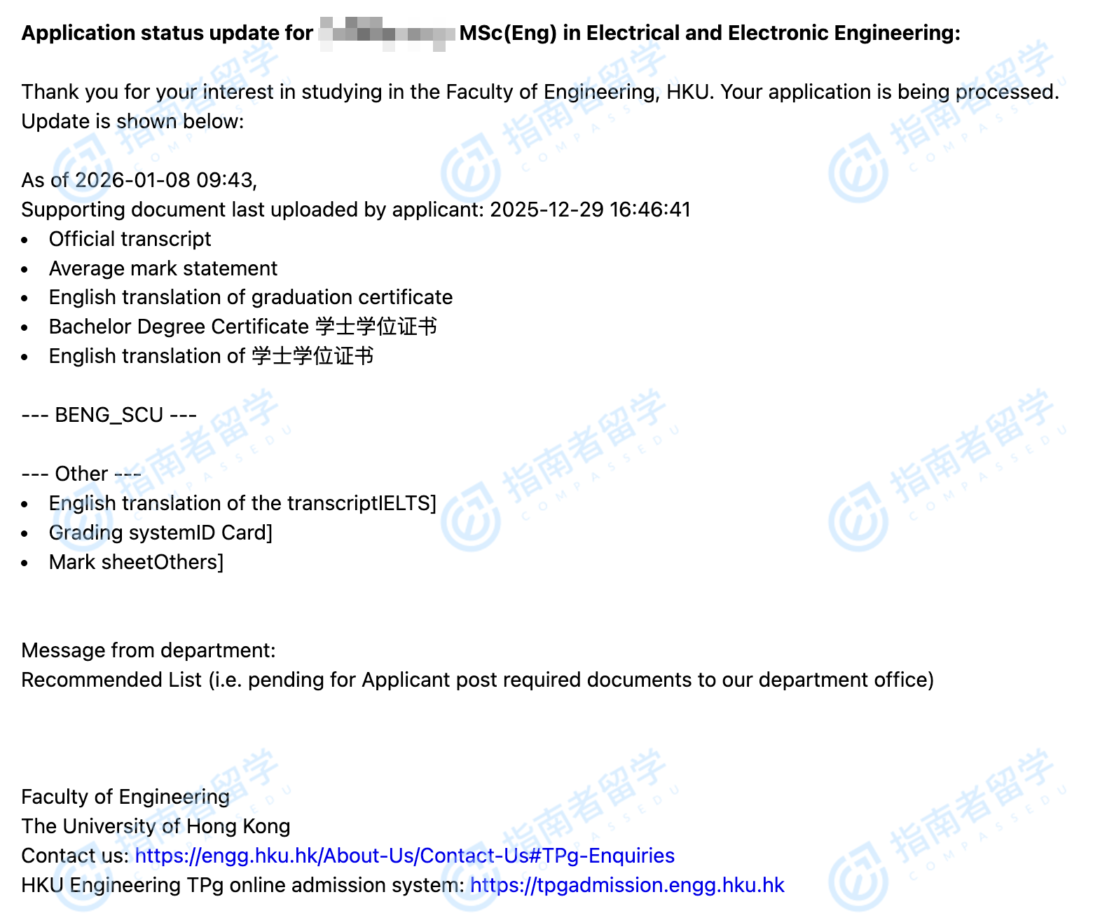 香港大學(xué)電氣與電子工程(工程)理學(xué)碩士 - 電力工程方向研究生offer一枚