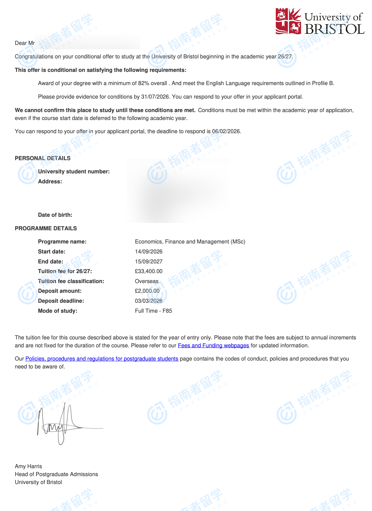 布里斯托大學(xué)經(jīng)濟、金融與管理理學(xué)碩士研究生offer一枚
