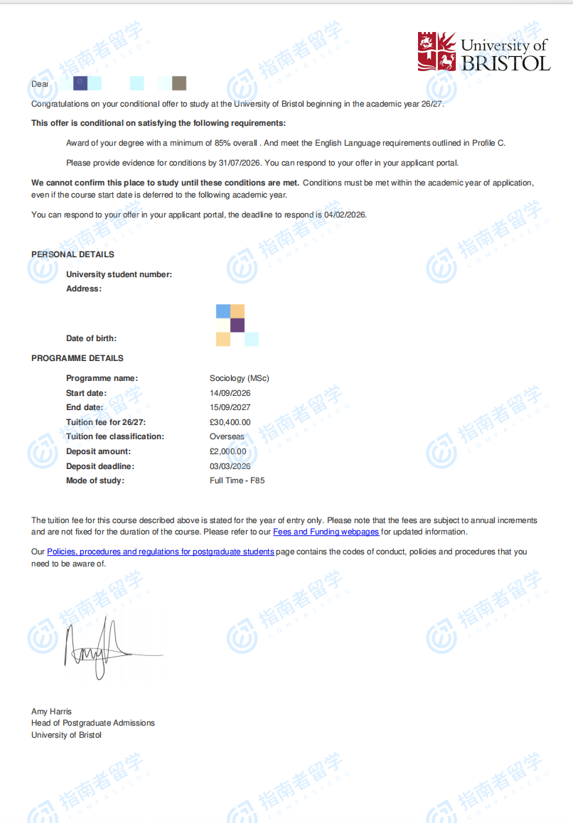 布里斯托大學(xué)社會學(xué)理學(xué)碩士研究生offer一枚