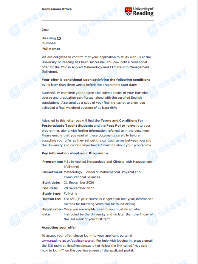 雷丁大學(xué)大氣、海洋與氣候理學(xué)碩士研究生offer一枚