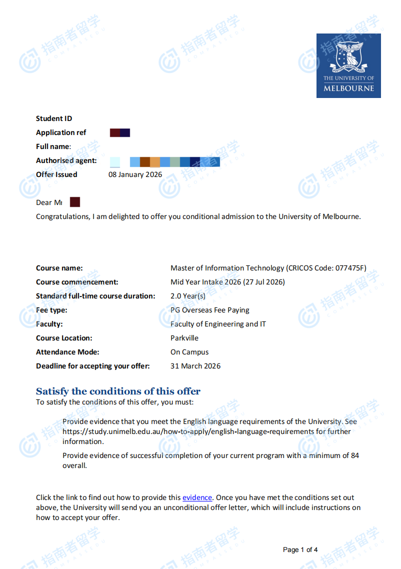 墨爾本大學(xué)信息技術(shù)碩士研究生offer一枚