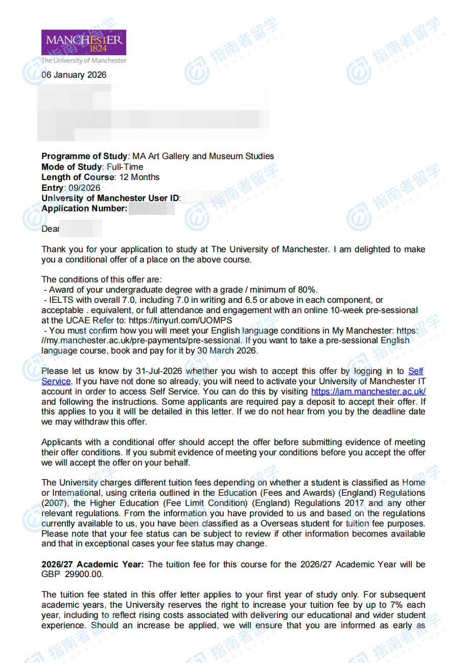 曼徹斯特大學(xué)創(chuàng)意與文化產(chǎn)業(yè)文學(xué)碩士研究生offer一枚