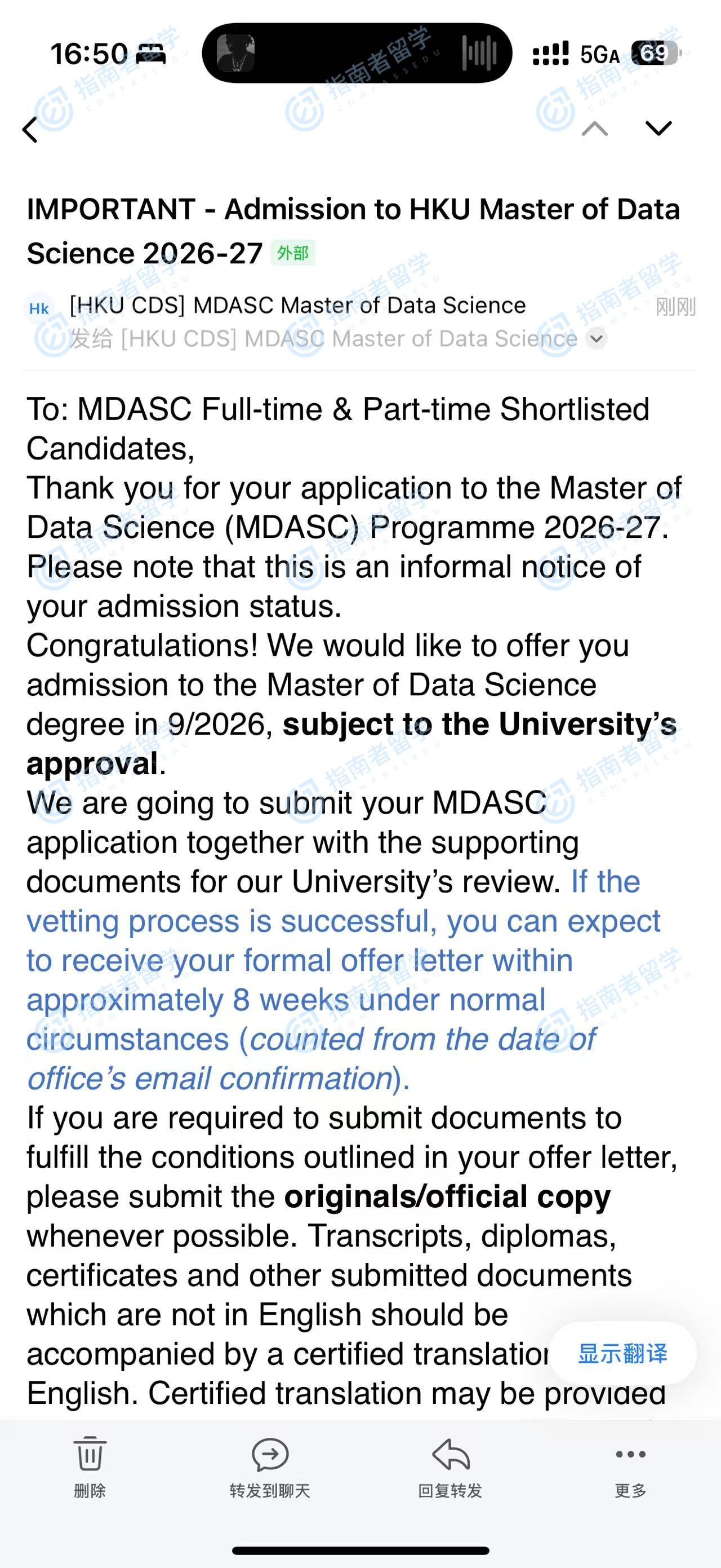 香港大學數(shù)據(jù)科學碩士研究生offer一枚