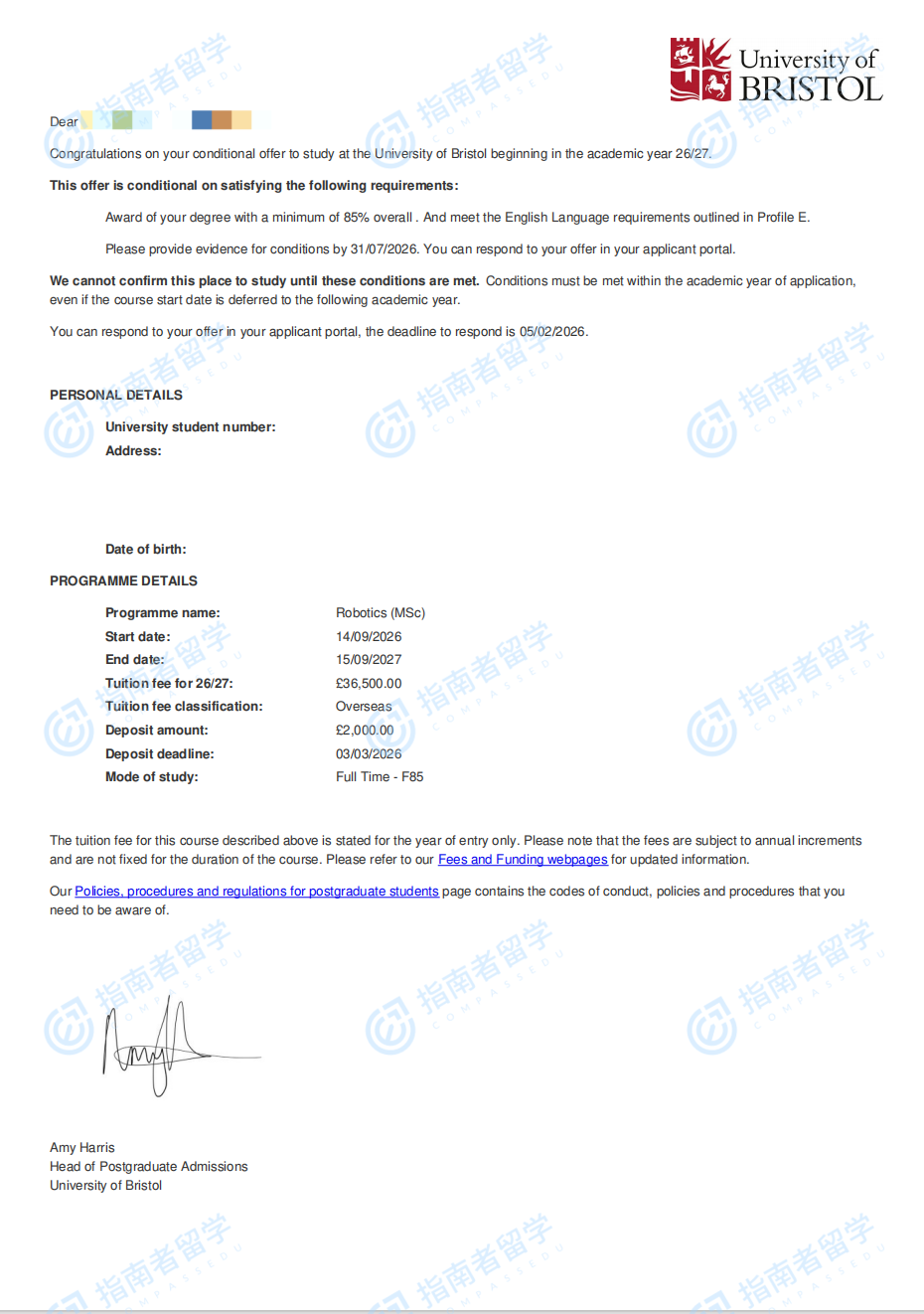 布里斯托大學(xué)機(jī)器人學(xué)理學(xué)碩士研究生offer一枚