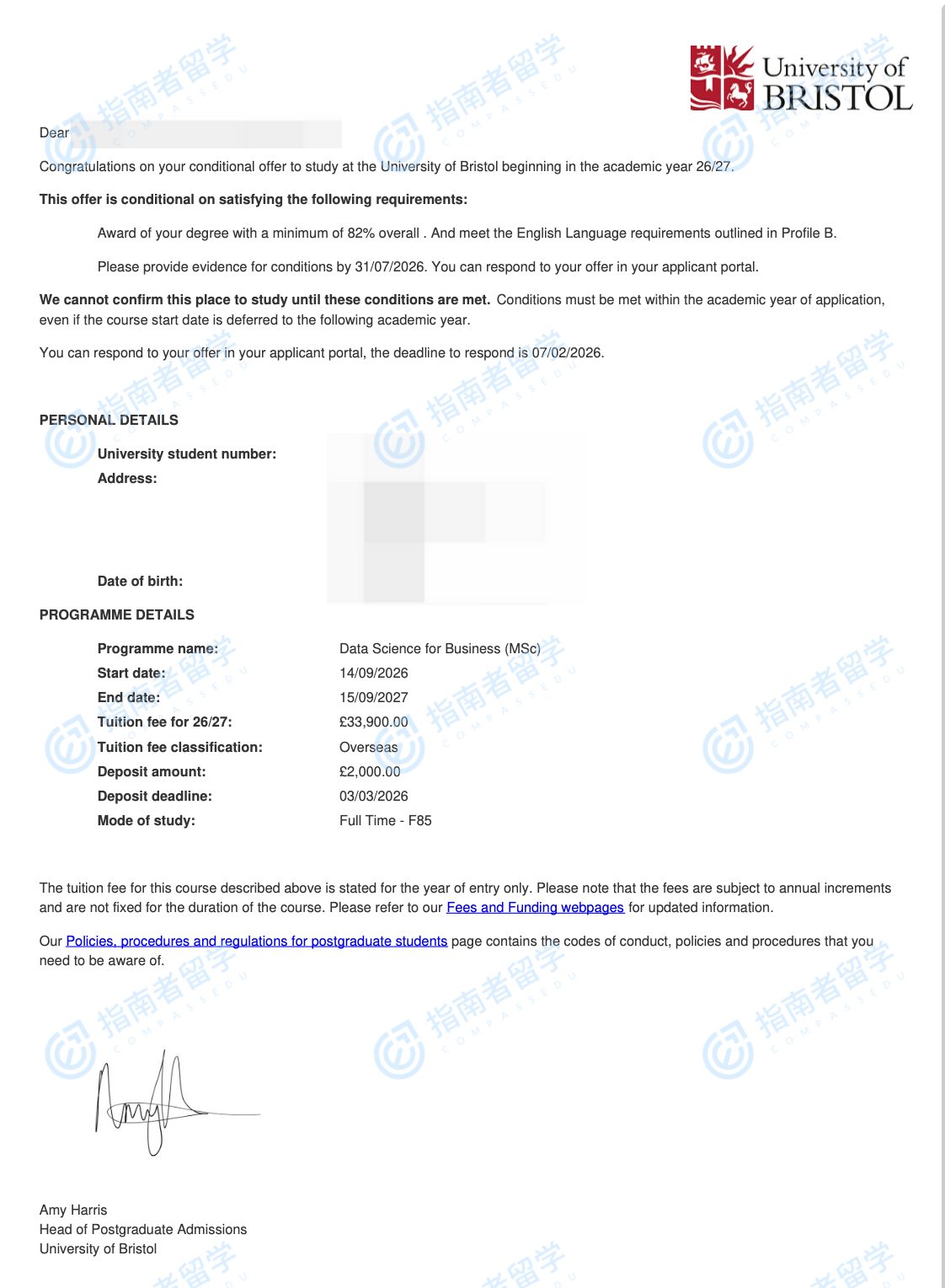 布里斯托大學(xué)商業(yè)數(shù)據(jù)科學(xué)理學(xué)碩士研究生offer一枚